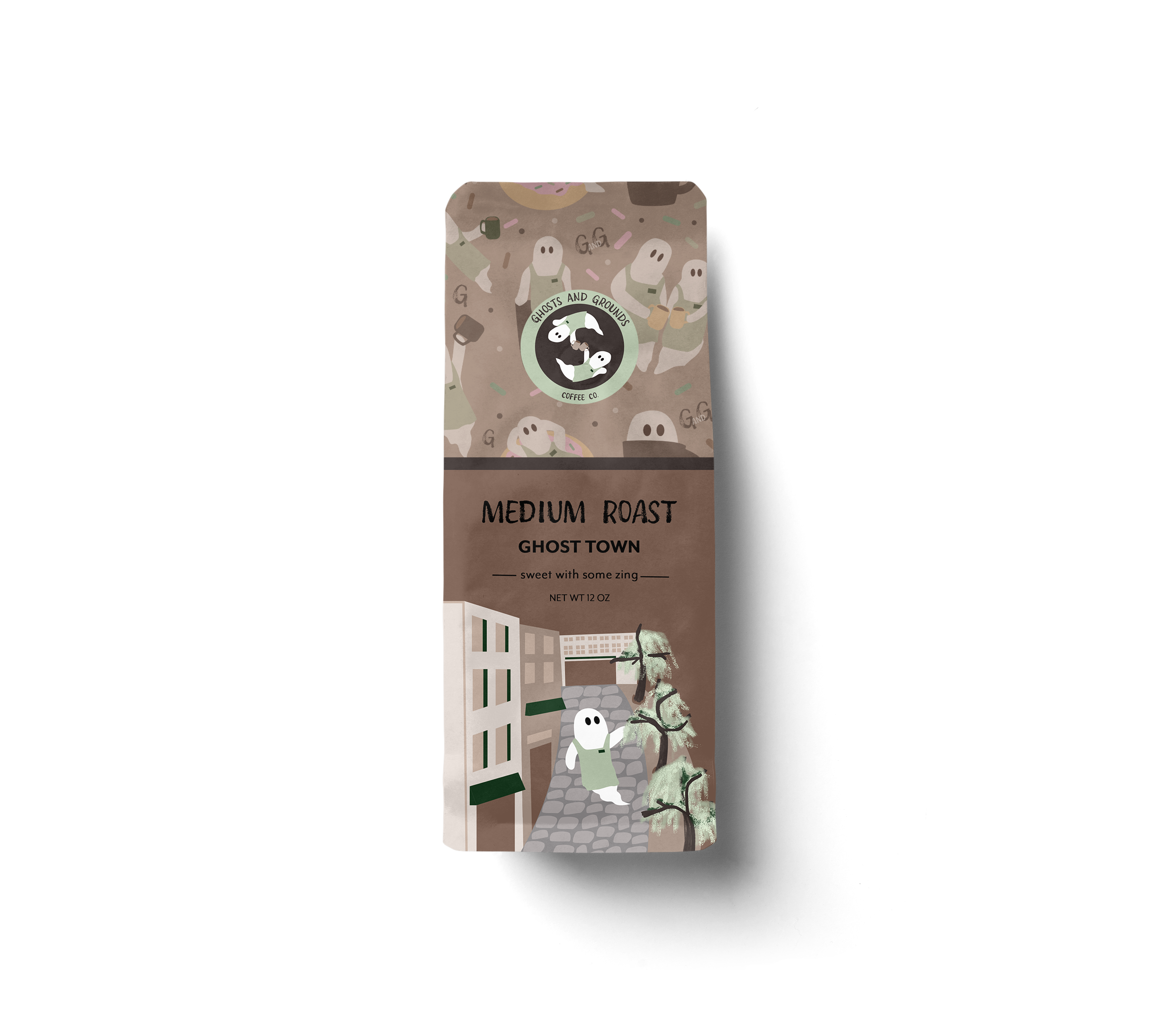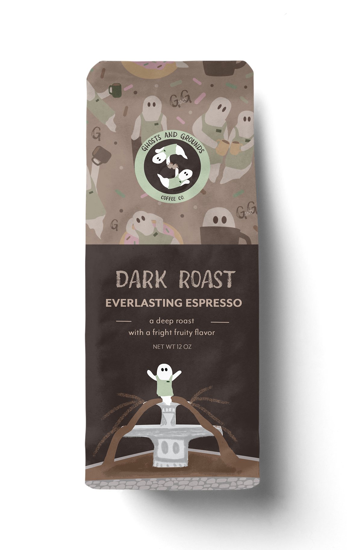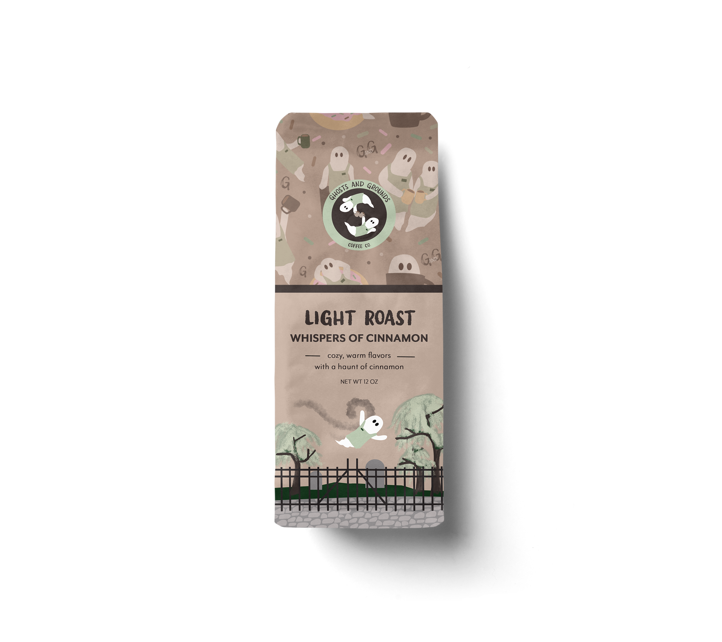 I developed this brand identity for a fictional coffee shop, Ghosts and Grounds Coffee Co. The concept centers around a small business owner in Savannah, Georgia, who aims to embrace the city’s well-known haunted culture. The logos and illustrations were created in Adobe Illustrator, with additional enhancements completed in Adobe Photoshop.