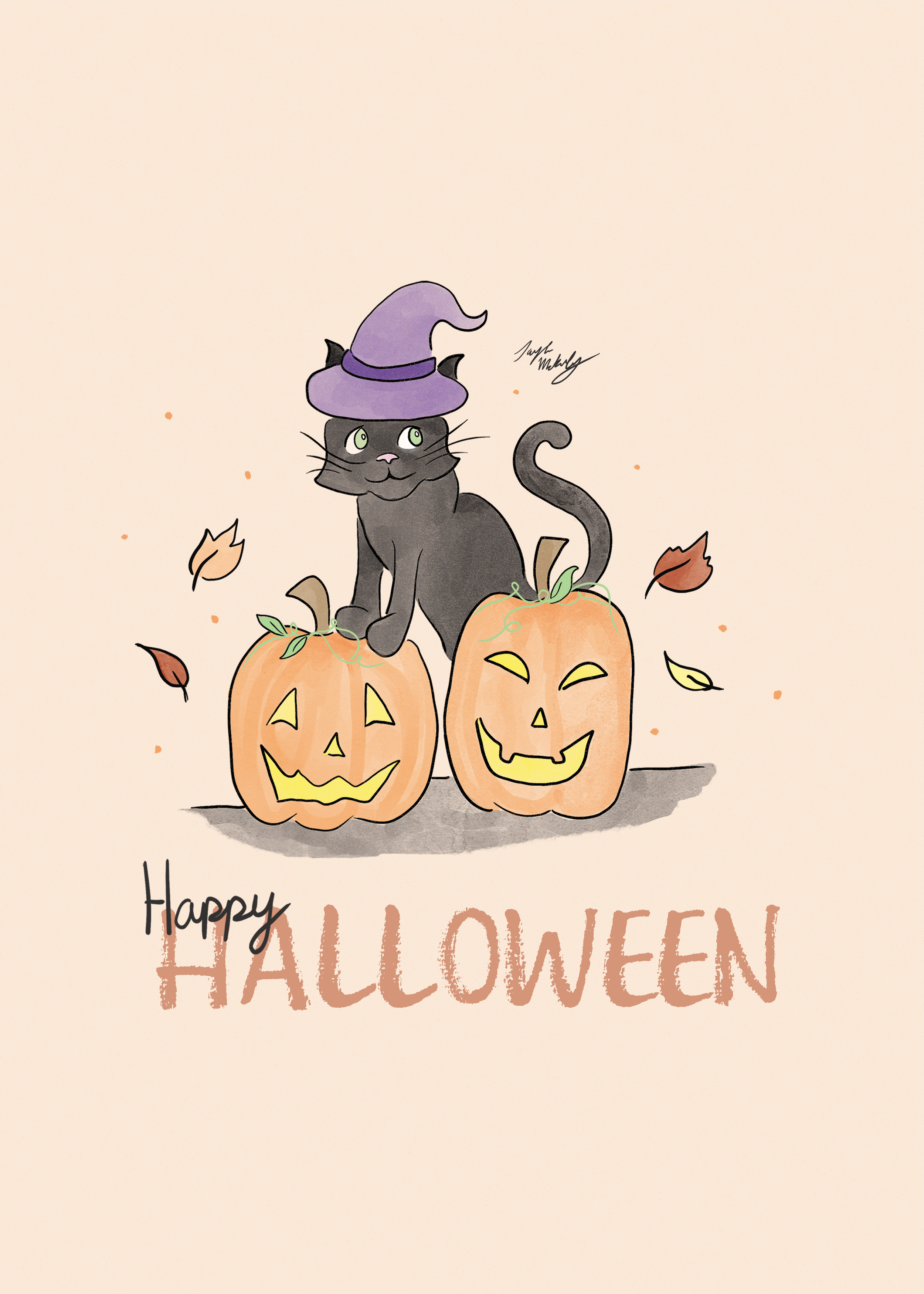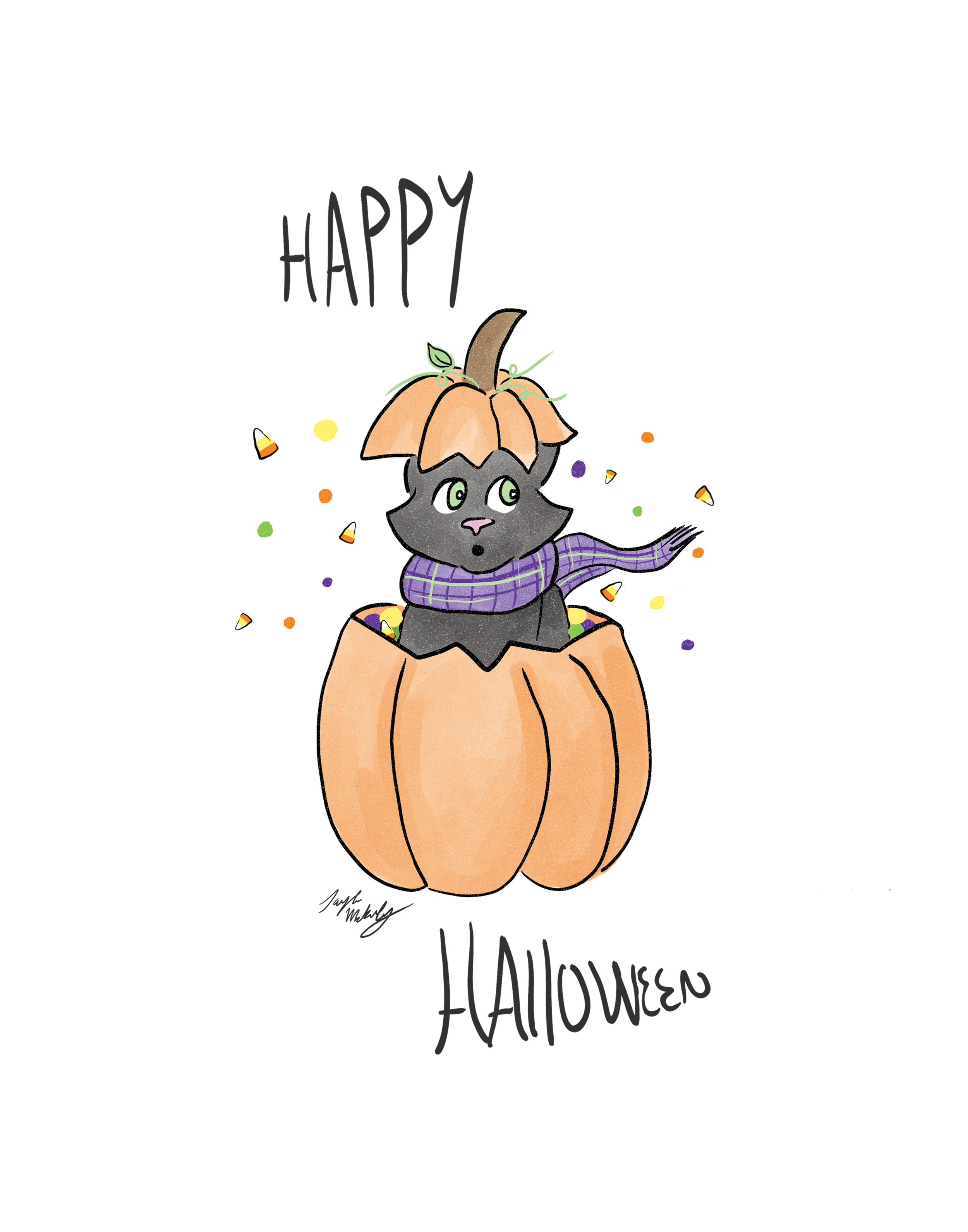 With Halloween being my favorite holiday and a desire to pursue a new creative project, I developed a collection of Halloween-themed art prints using digital illustration. These prints, available in multiple sizes (8×10, 11×14, and 18×24), will be offered for sale on my Etsy shop linked in the Contact section. To achieve a nostalgic, vintage aesthetic, I incorporated textured elements throughout the designs.