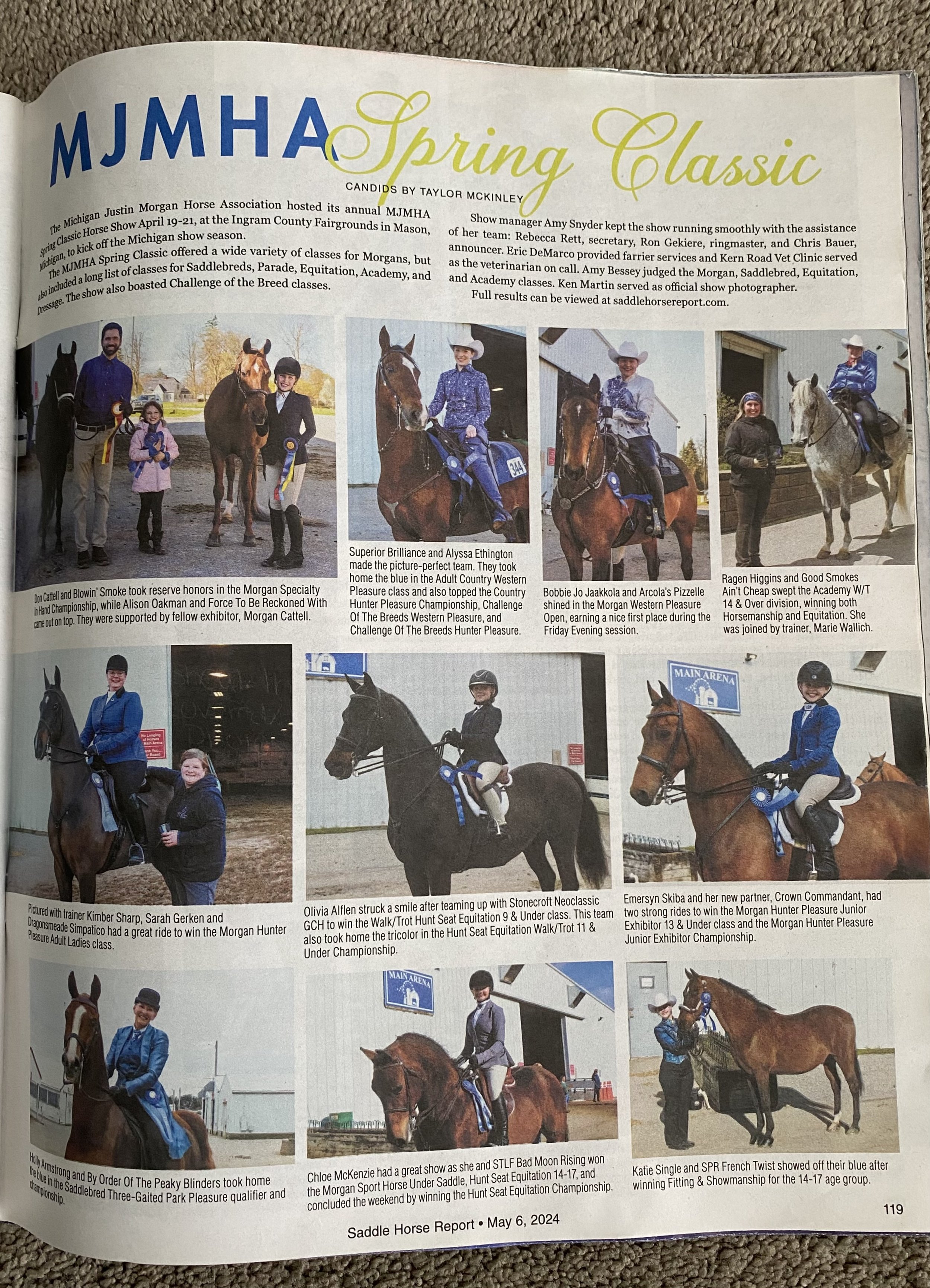 As a correspondent for the Saddle Horse Report equestrian magazine, I capture, edit, and publish photos to accompany articles and increase reader engagement.