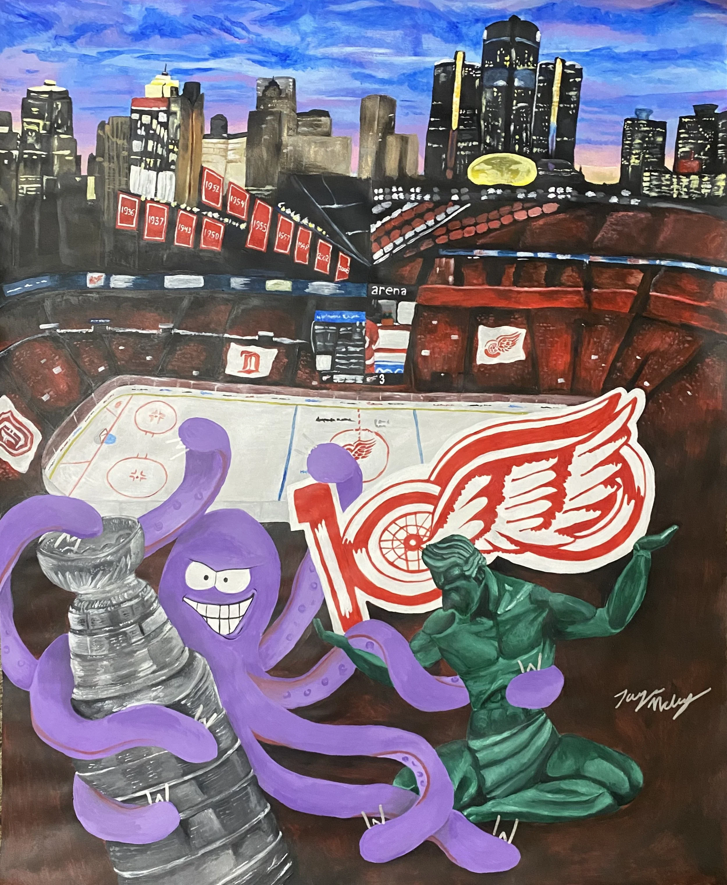 Detroit Hockey Night, 24 inch by 30 inch acrylic on paper