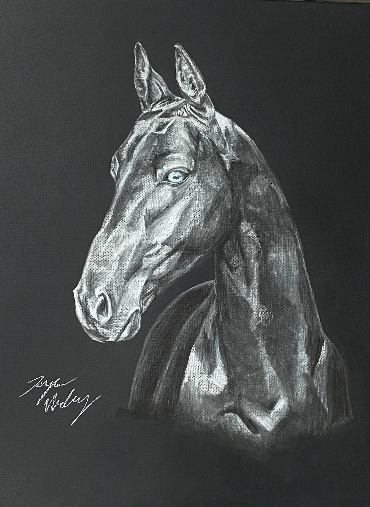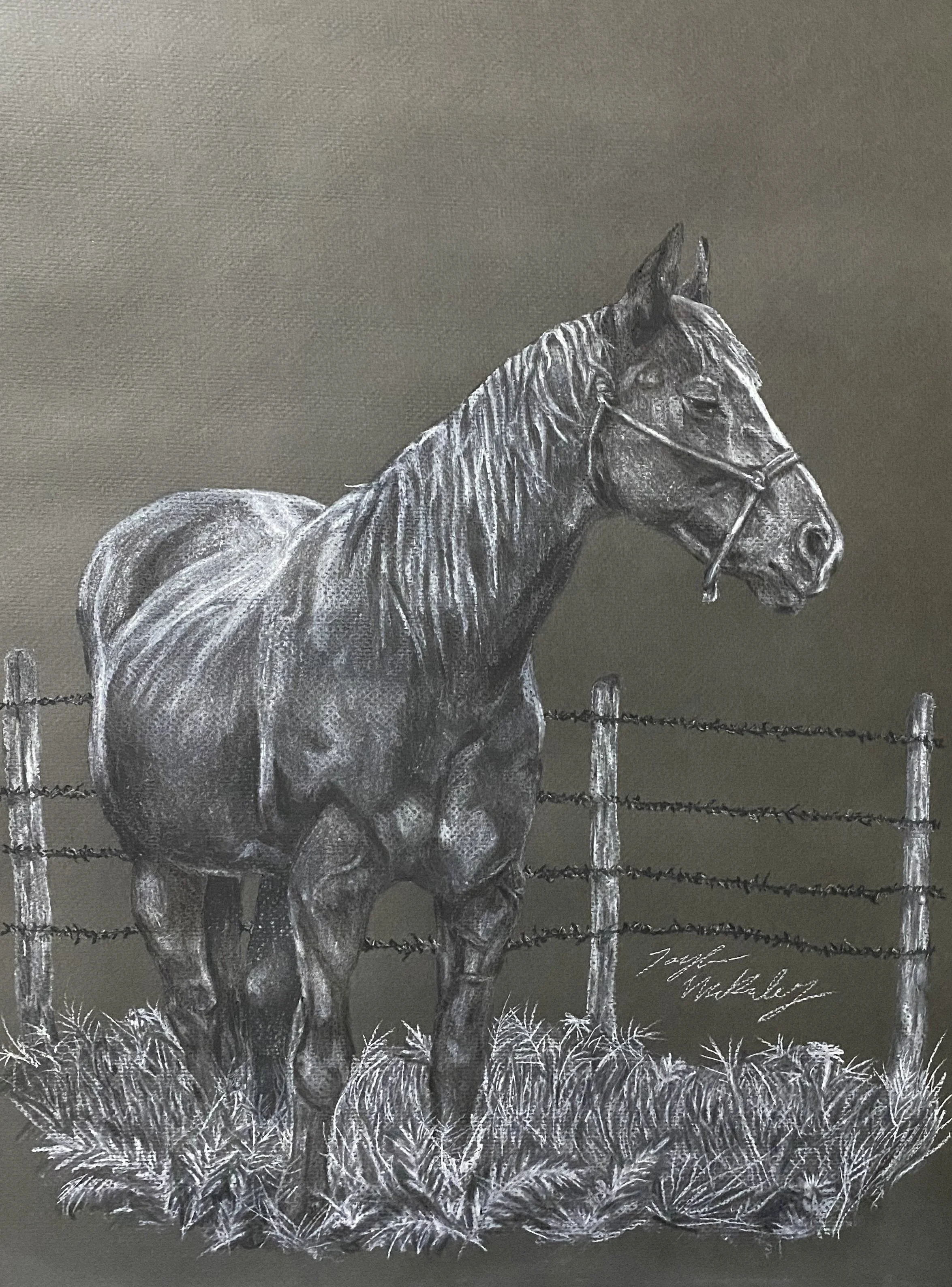The Beauty of a Horse, 18 inch by 24 inch charcoal and white conte on paper