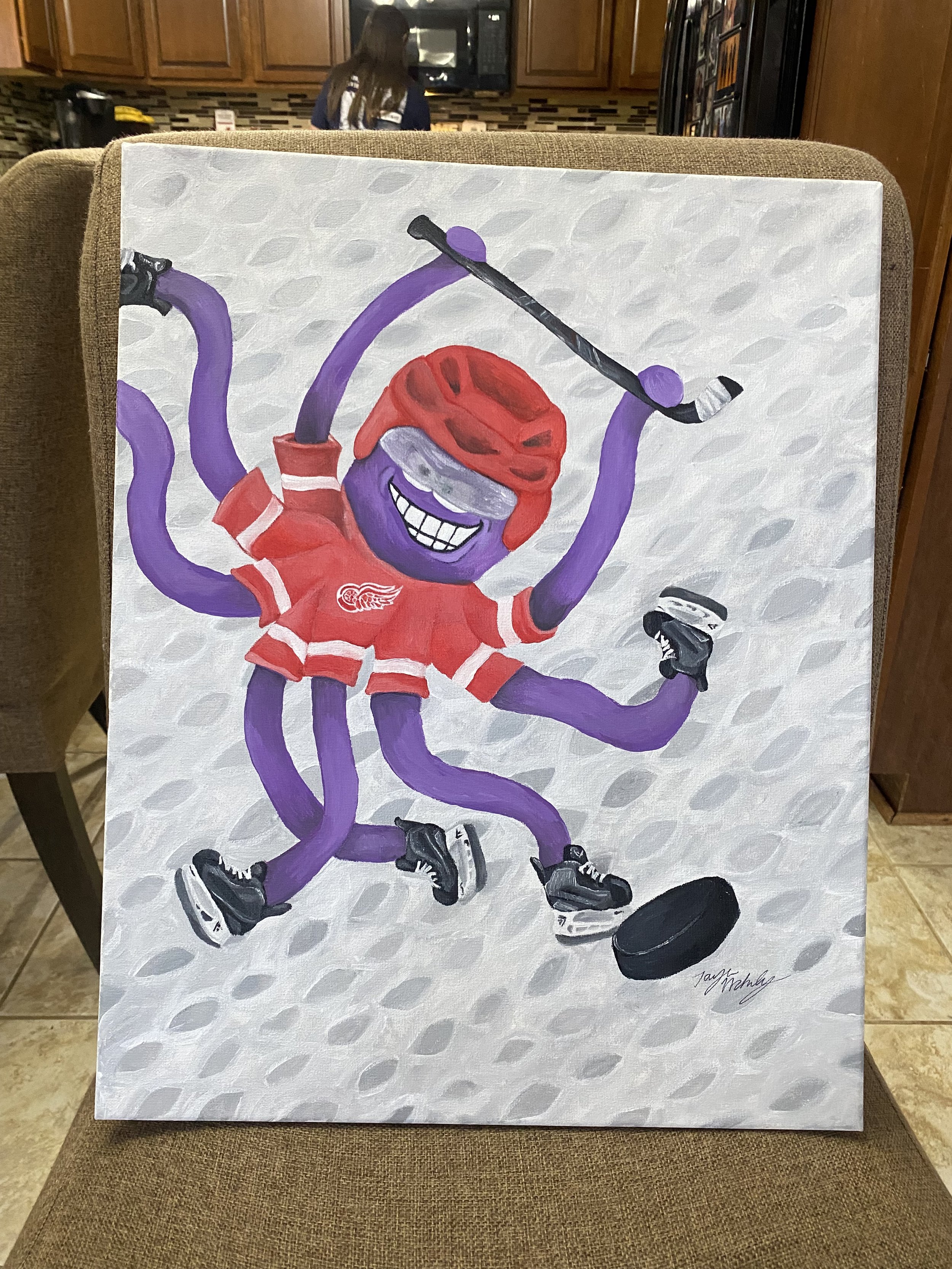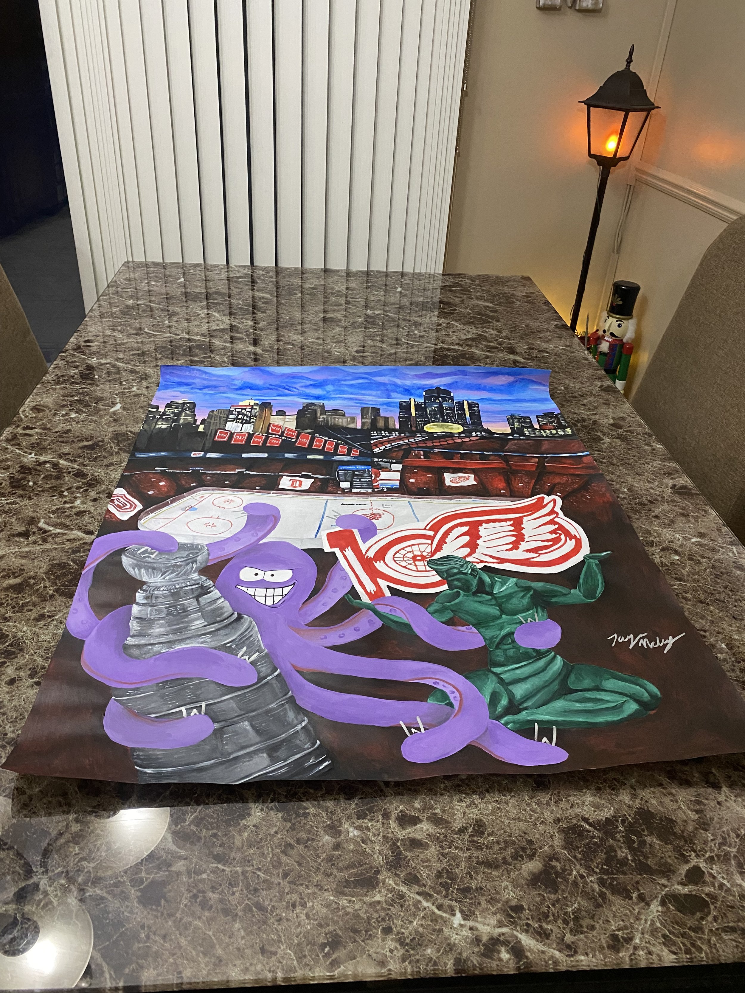 This piece was donated to The Hockey Night fundraiser ran by Detroit Red Wings Alumni.