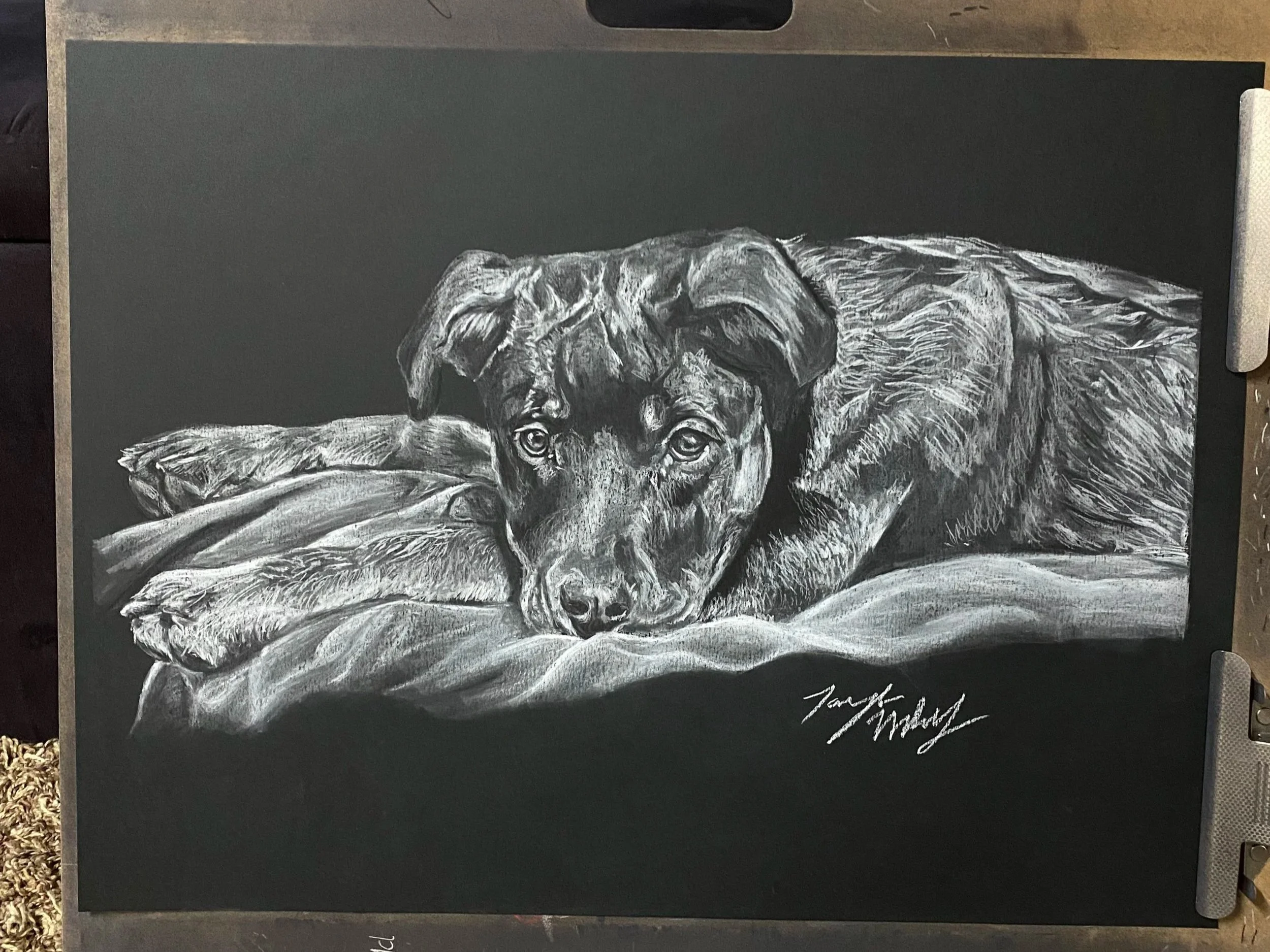 I create hand drawn custom charcoal and conte drawings in various dimensions, specializing in animal portraits. I accept commissions most commonly through social media or my Etsy account (DrawingbyDesignTM)