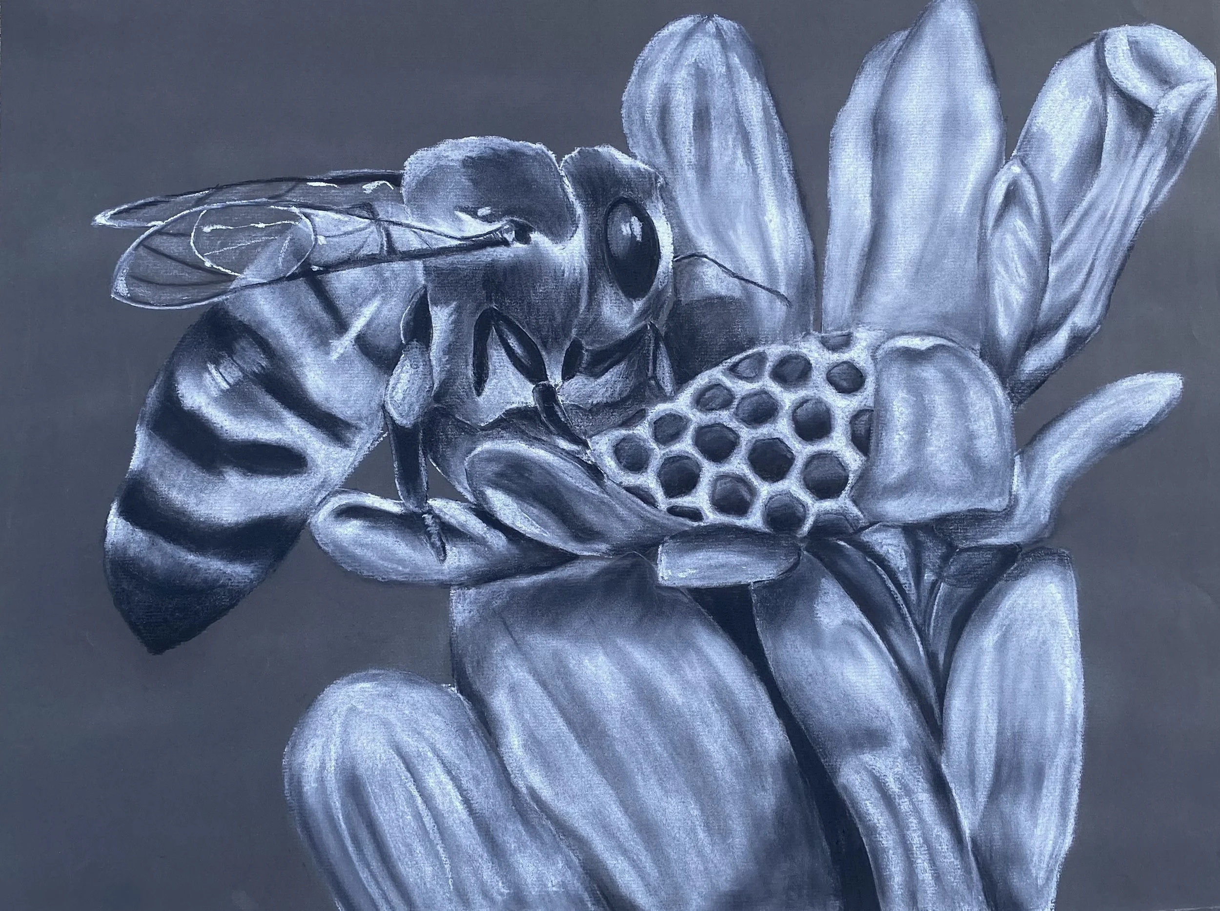 Nature’s Soldier, 18 inch by 24 inch charcoal and white conte on paper